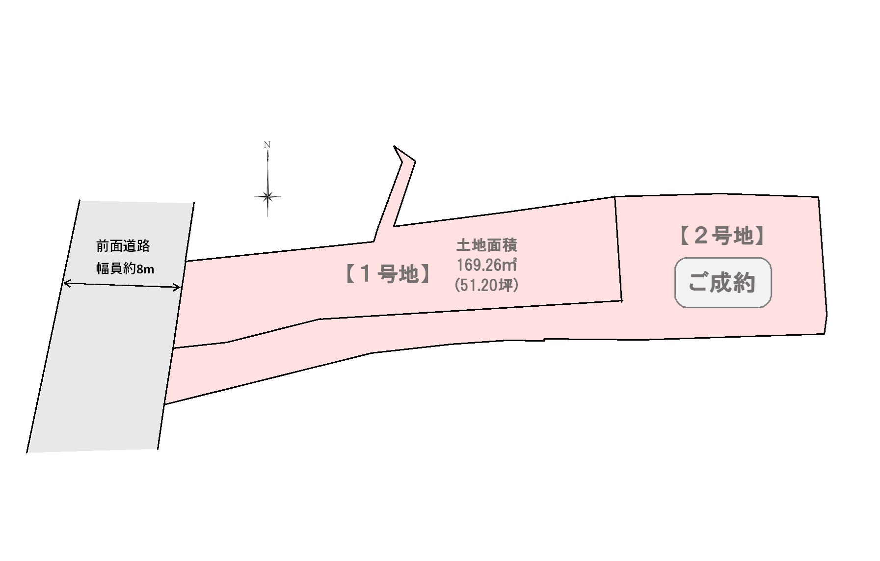 | 道路幅員 | 約8m(アスファルト舗装、建築基準法第43条第2項第2号許可による接道) |