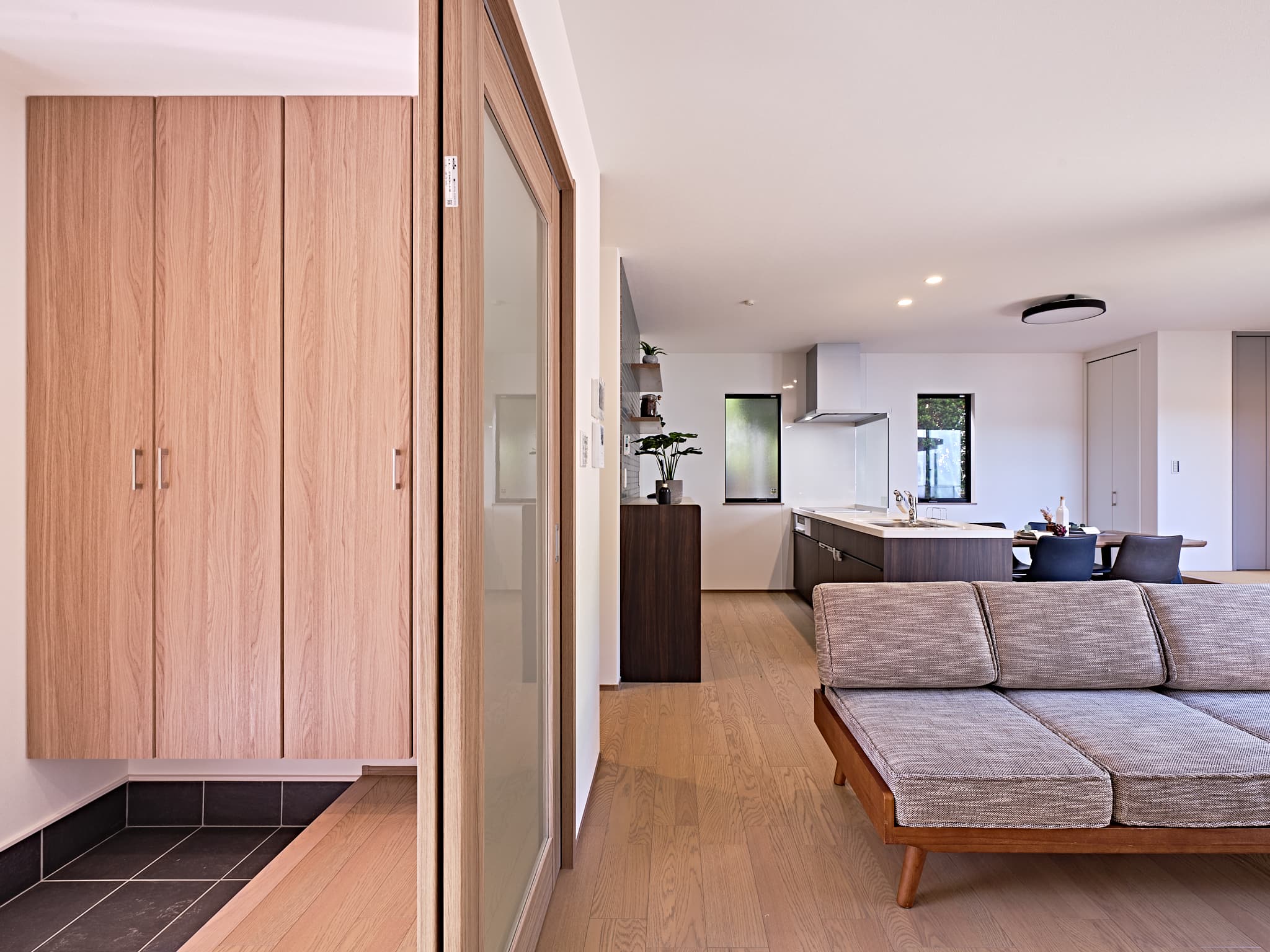 玄関にはたっぷりの収納を設け、ごちゃつきがちな空間もすっきりと整えられる工夫が。「あったらいいな」を叶える収納設計です。