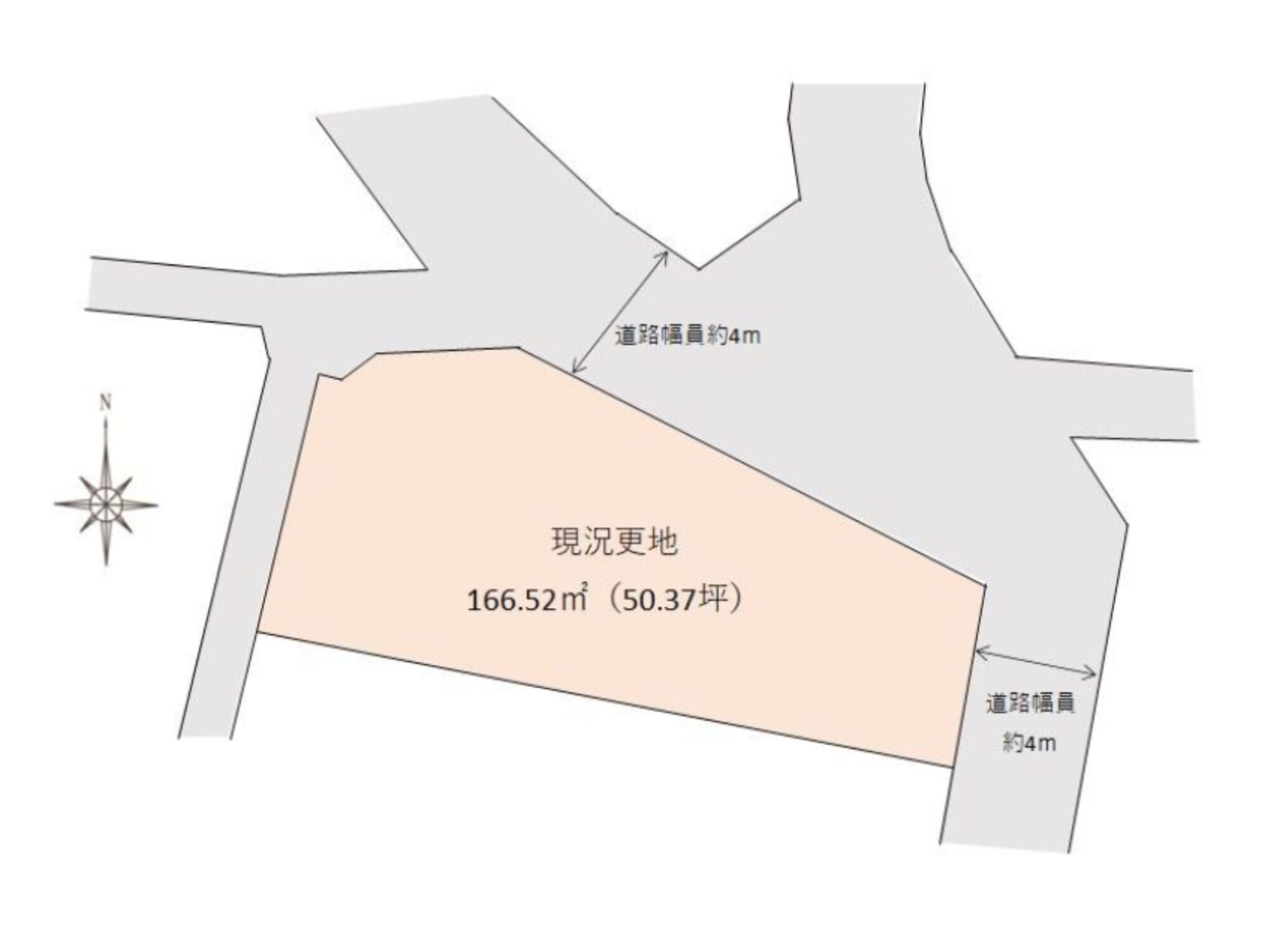 | 道路幅員 | 東側 幅員約4m 北側 幅員約4m |