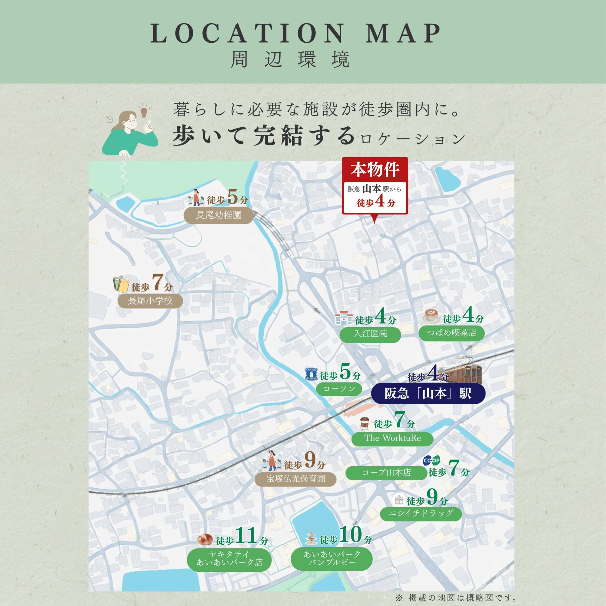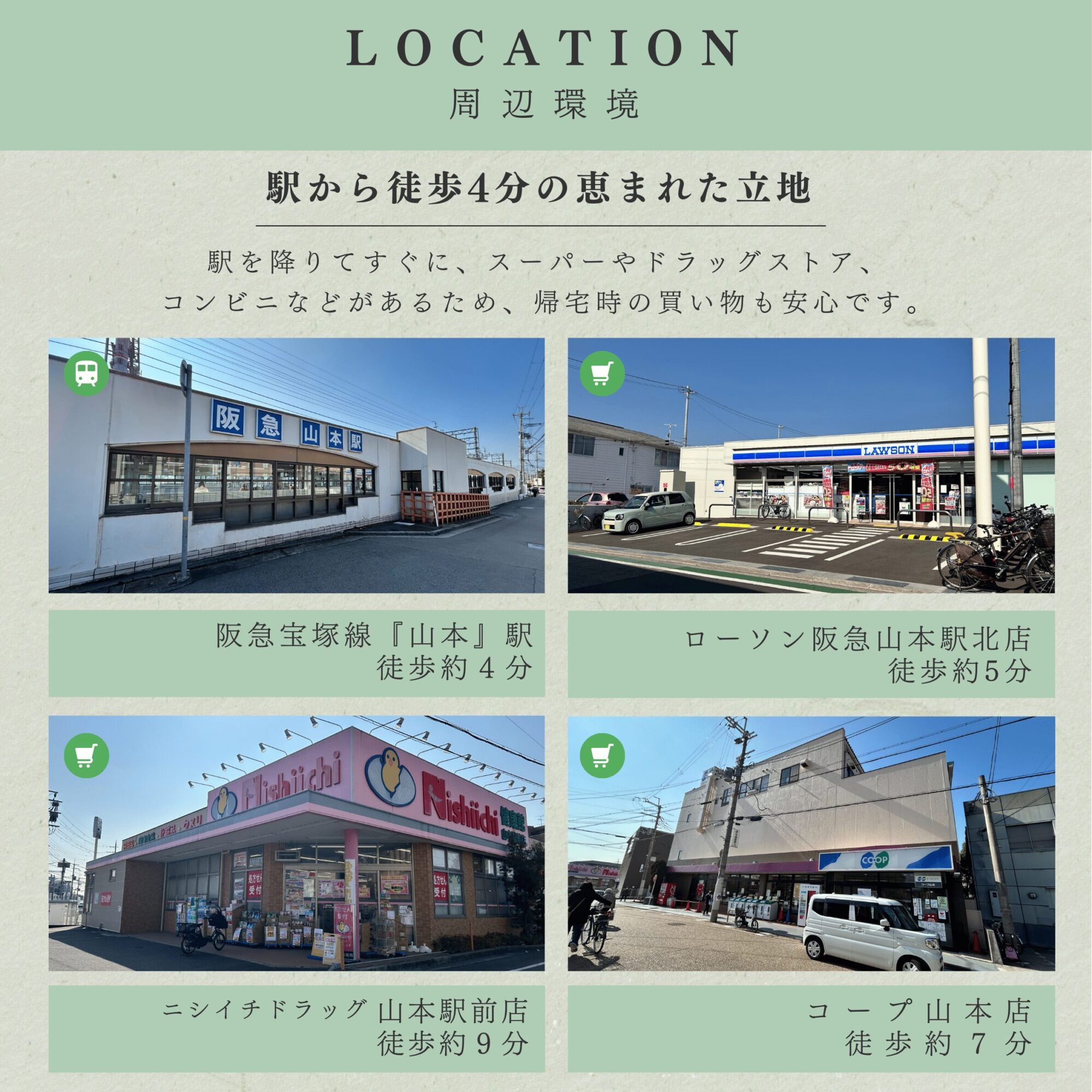 ローソン阪急山本駅北店徒歩約5分